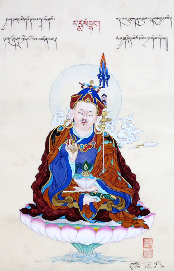 He is revered as an emanation of Buddha Shakyamuni and the source of the Nyingma school, and his blessings are cherished in all schools of Tibetan Buddhism. Through his activity he tamed obstructing forces, turned local deities into Dharma protectors, and hid countless treasure teachings (terma) to be revealed later, exactly when beings needed them.