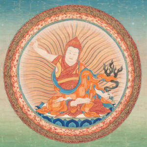 Padmasambhava, Guru Rinpoche, the “Precious Guru,” is the great Vajra master who brought Vajrayana Buddhism to Tibet in the 8th century. Invited by King Trisong Detsen, he helped establish Samye, the first monastery in Tibet, and opened the mandala of Vajrayana to his twenty-five main disciples at Chimphu.